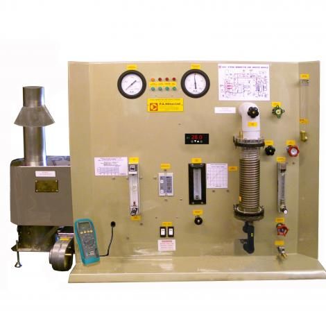 A bench top unit which provides a gas fired steam generator for wet or superheated steam. A condensing unit with air ejector and a closed feed water system allow the Rankine cycle to be investigated.