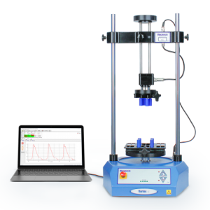 The Vortex-i is a top of the range torque tester controlled by software running on a PC. Accurate, easy to use and optimized for measuring static torque up to 10 N.m.The ultimate flexible solution for automated torque testing of a wide range of closures and components. A sturdy twin-column test frame capable of applying torque up to 10 N.m (90 lbf.in). Tall and wide enough to accept a variety of test specimens yet compact to use as a bench-top tester.
