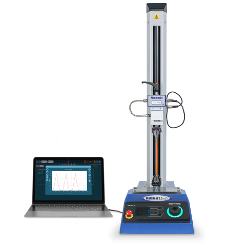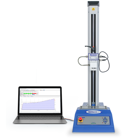 The single-column MultiTest-i is a versatile tensile and compression tester controlled by software running on a PC. The single-column range fits neatly on your bench-top and is ideal for product testing applications according to your own test methods. The single-column MultiTest-i testers are the perfect solution for measuring forces up to 5 kN (1100 lbf) on a huge variety of components made from almost any material, either during their normal operation or when being pulled/pushed until they deliberately fail or break.